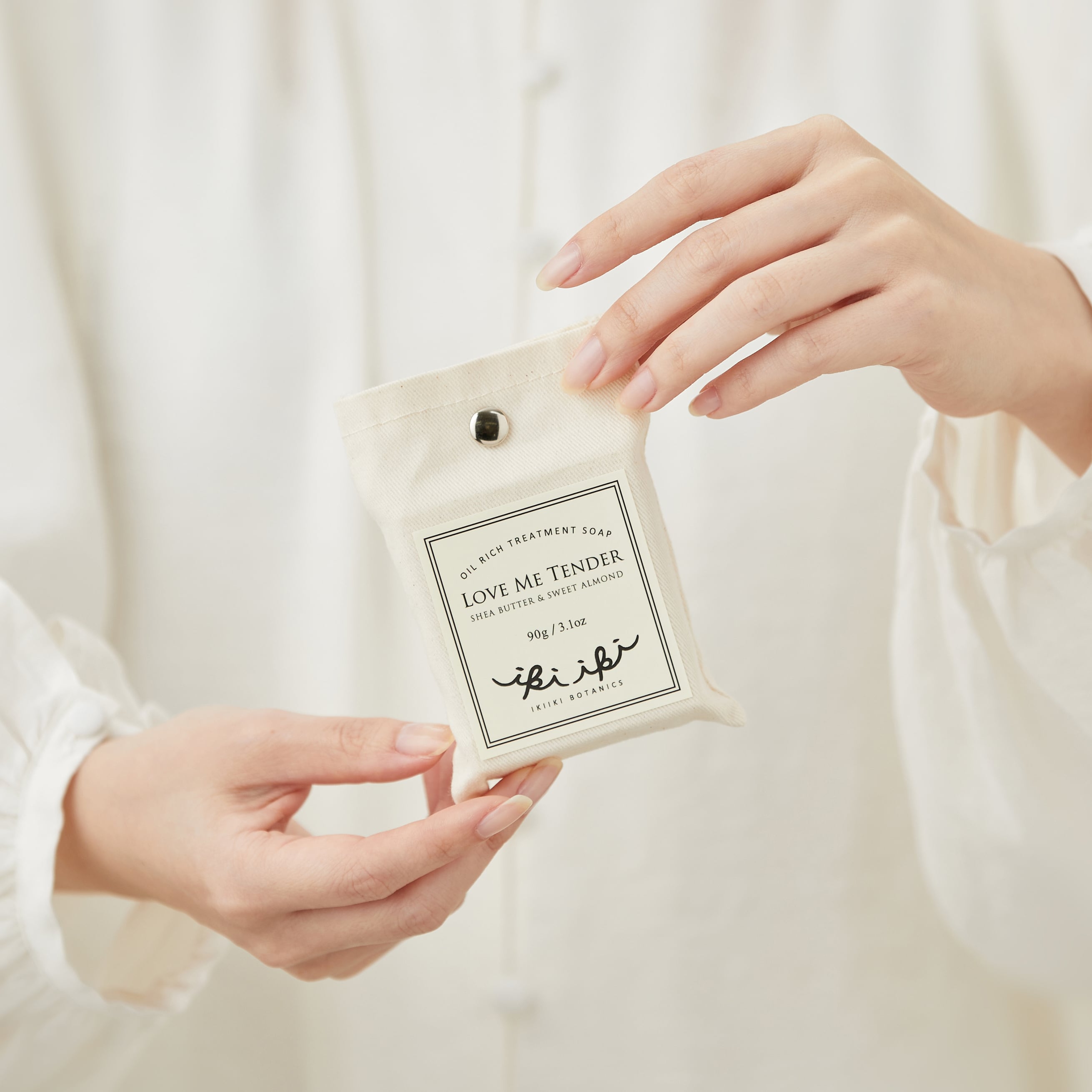 化粧を落とした後、濡らしたせっけんから溶け出したとろみを直接肌にすべらせながらやさしくマッサージします。濃厚な美容成分が目にしみることがあるので、しっかり目を閉じてお使いください。その後、ぬるま湯でヌメリがなくなるまできれいにすすぎます。