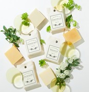 オリーブ油、水、水酸化Na、パーム核油、パーム油、ホホバ油、カニナバラ果実油、シア脂、ダマスクバラ花油、ニオイテンジクアオイ花油、ラベンダー油、オレンジ果皮油