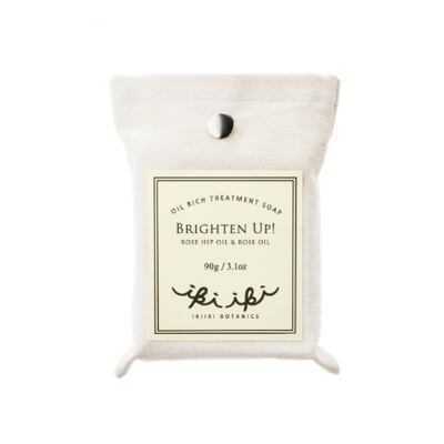 ブライトンアップは、こびりつく乾燥くすみを一掃し、肌につややかな透明感を与えます。ビタミンC豊富なローズヒップオイルをたっぷり配合したせっけんでマッサージすることで血行が促進され、肌のトーンアップ効果も。