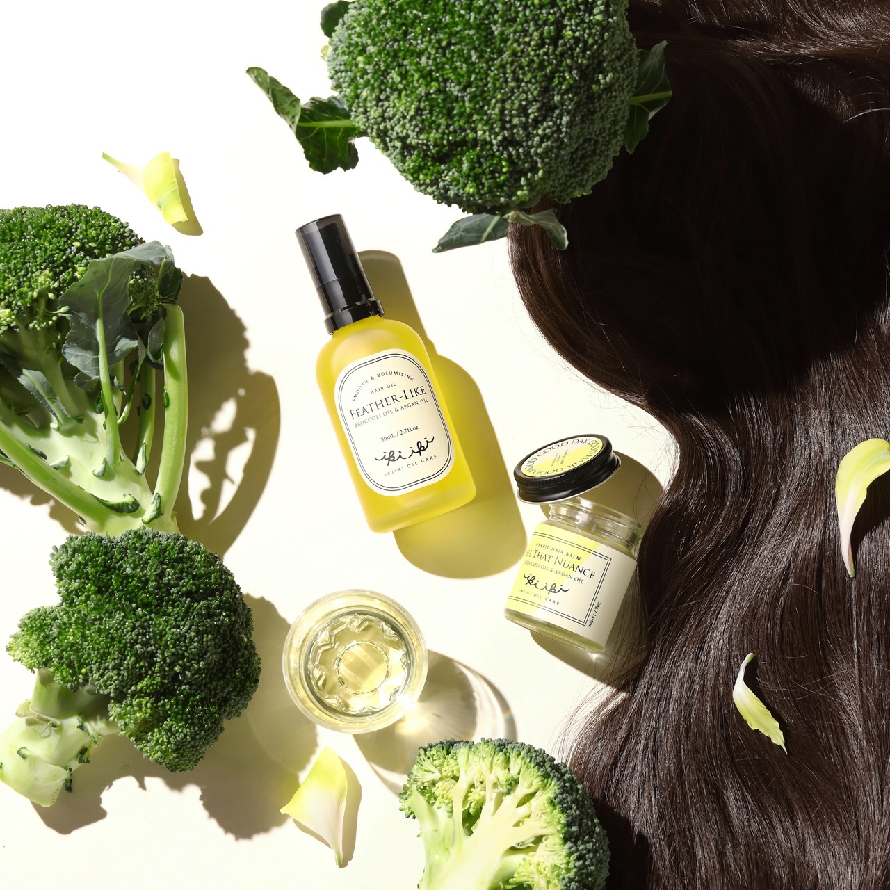 キー成分に「天然のシリコン」と呼ばれるブロッコリーオイルとアルガンオイルが髪内部の水分量を整えながら、アプリコットオイルが傷んだキューティクルを補修し、さらにアボカドオイルが紫外線の刺激から髪を守ります。
